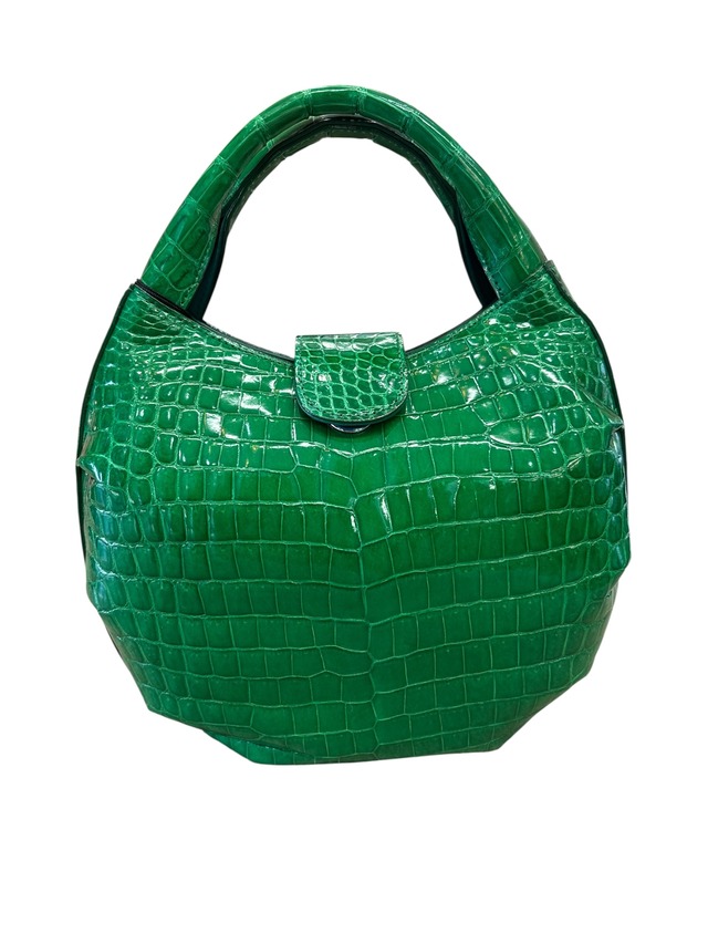 鮮やかなグリーンのカラーとコロンとした丸みのあるフォルムが特徴の「シャイニングクロコ2wayバッグ」です。普段使いから特別なお出かけまで使えるデザインが魅力的です。また、大きく開くので中が見やすく取り出しやすいです。 ショルダーとハンドルの2way仕様で、シーンに合わせたスタイルを楽しむことができます。 外側には高級感あふれるシェイニングクロコダイルを使用しており、華やかさとエレガンスを演出します。内側には柔らかなスエードを使用しております。見た目と使い心地にこだわった日本製のバッグです。 参考上代:¥770,000 素材: 外側:シャイニングクロコダイル、内側:スエード サイズ: 約縦20cm × 横20cm × 厚み7.5cm バッグ上部からハンドル上部まで 11㎝ 仕様: マグネット開閉、内ファスナーポケット×1、内ポケット×2、ショルダー紐付 専用の袋に入れ、梱包してお送りいたします。 【注意事項】 天然素材のため、模様や色合いは画像と多少異なる場合がございます。予めご了承ください。