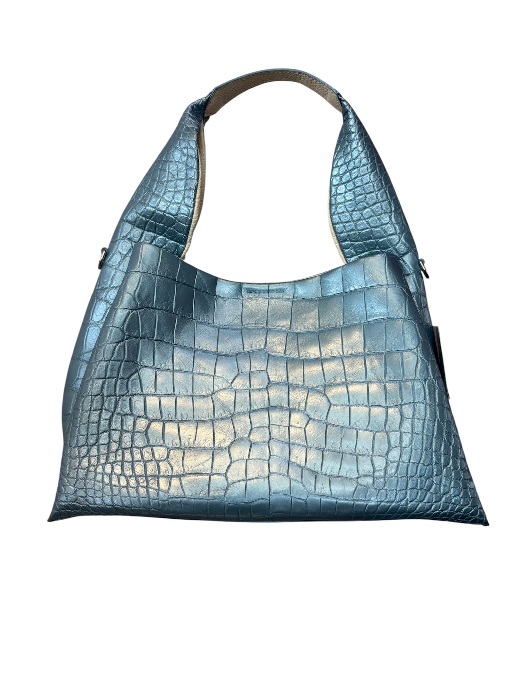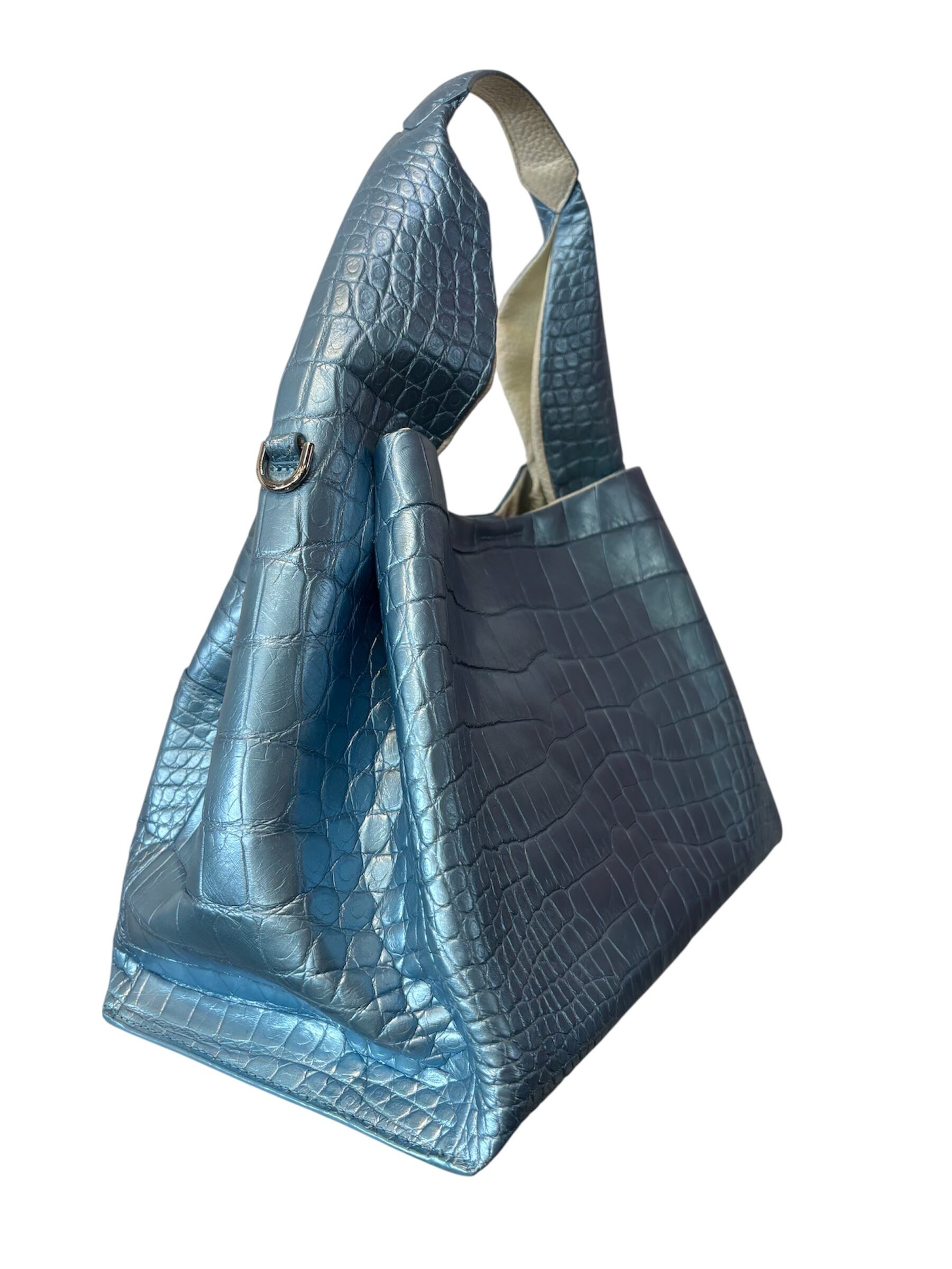 ■軽やかで柔らかなシルバーの「パールクロコバッグ」